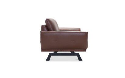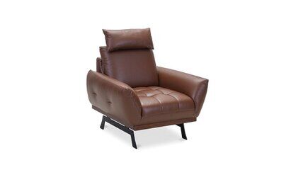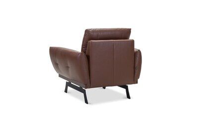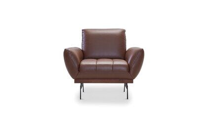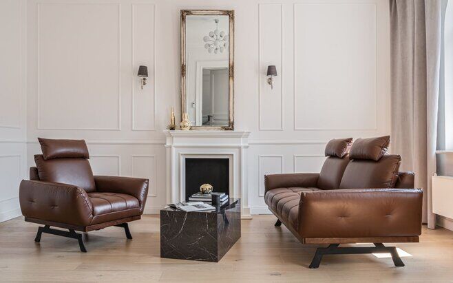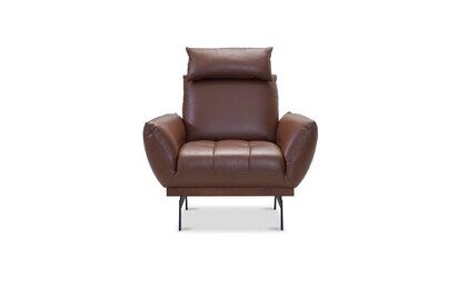 Skórzany fotel Nicea (dostępny także w obiciu z tkaniny) na nogach platformowych (do wyboru w dwóch opcjach) wyróżnia się kształtami nawiązującymi do wnętrz pałacowych. Charakterystyczną cechą jego designu jest miękka, zaoblona linia, którą podkreślają pękate podłokietniki. Do mebla możesz dobrać opcjonalny zagłówek w kształcie podłużnej poduszeczki, który zapewnia odpowiednie wsparcie dla głowy i stanowi sam w sobie dodatkowy element dekoracyjny mebla.