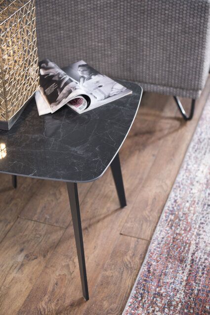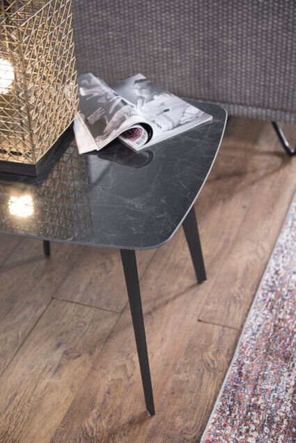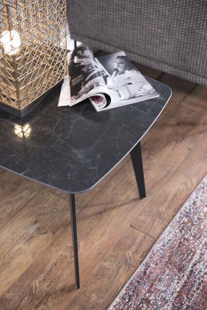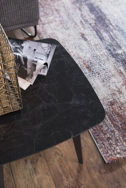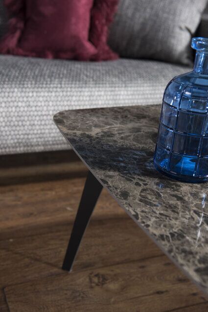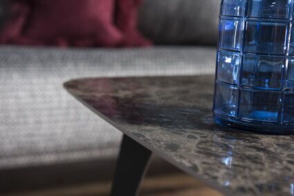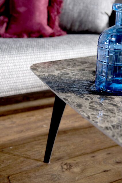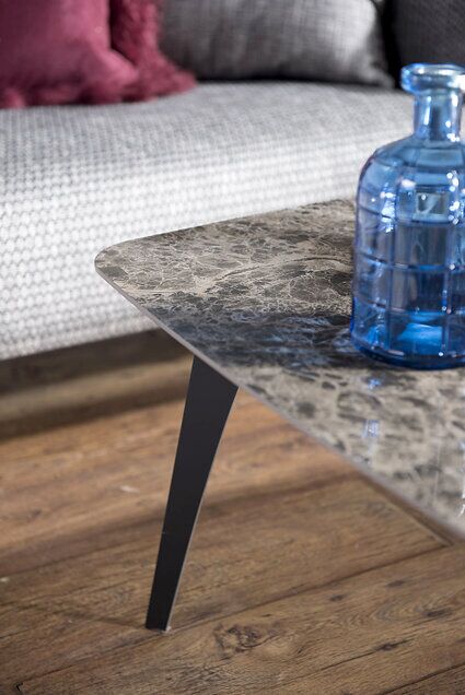 Blat ławy Quai wykonany został z włoskiego spieku kwarcowego oraz metalowych czarnych nóżek malowanych proszkowo w kolorze czarnym. Zaokrągleone boki w ławie nadają jej lekki oraz niepowtarzalny wygląd. Istnieje możliwość wyboru innego blatu oraz wymiaru ławy, nóżki mogą być wykonane w dowolnym kolorze z palety RAL.