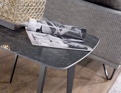 Materiały użyte do wykonania: Spiek kwarcowy + MDF, nóżki czarne metalowe