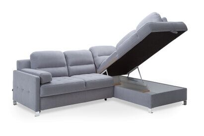 Miękki, komfortowy i do tego nie dużych rozmiarów narożnik Fiorino z efektownymi pikowaniami ala glamur. W uzupełnieniu o funkcję spania i pojemnik na pościel, zyskał miano pancernika kieszonkowego. Ponieważ oprócz niezwykłej urody, posiada również wszystkie niezbędne elementy mebla wypoczynkowego. Na niewielkim kawałku mebla zostały ulokowane wszystkie niezbędne służące naszej wygodzie walory.